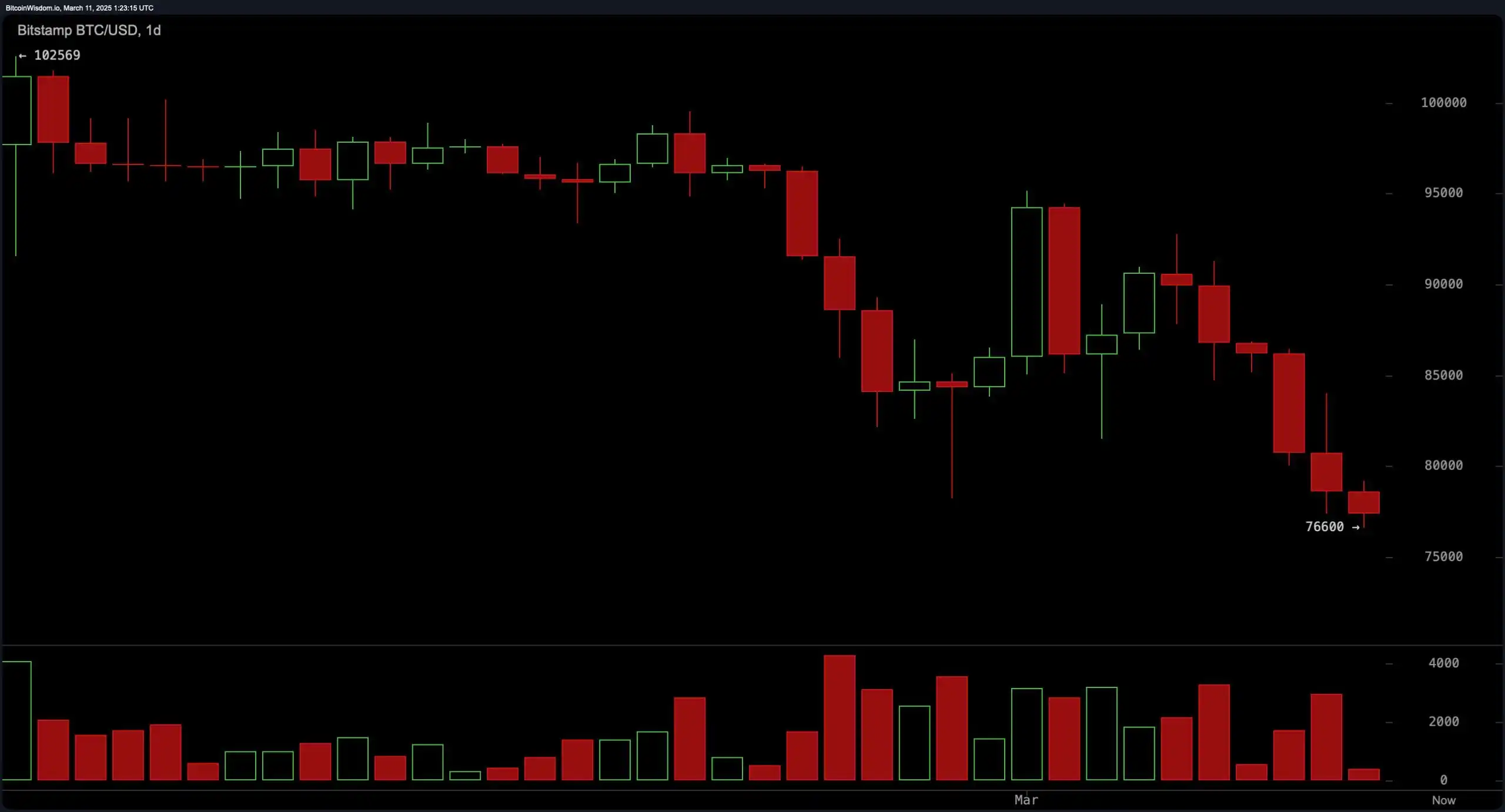 Bitcoin (BTC) đã trải qua một ngày giao dịch đầy biến động vào ngày 10/3/2025, rơi xuống mức thấp nhất $76,600 trước khi hồi phục nhẹ.