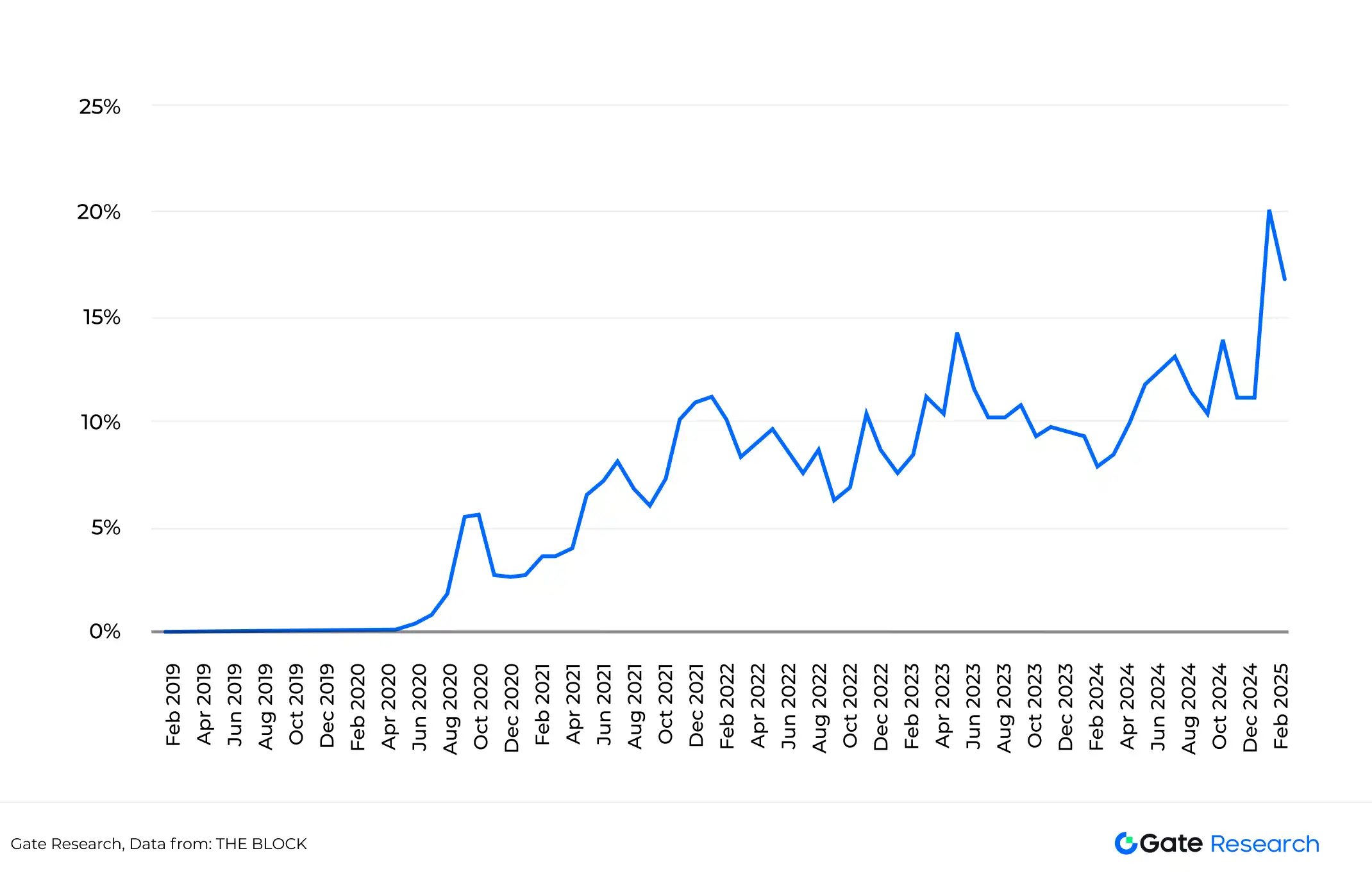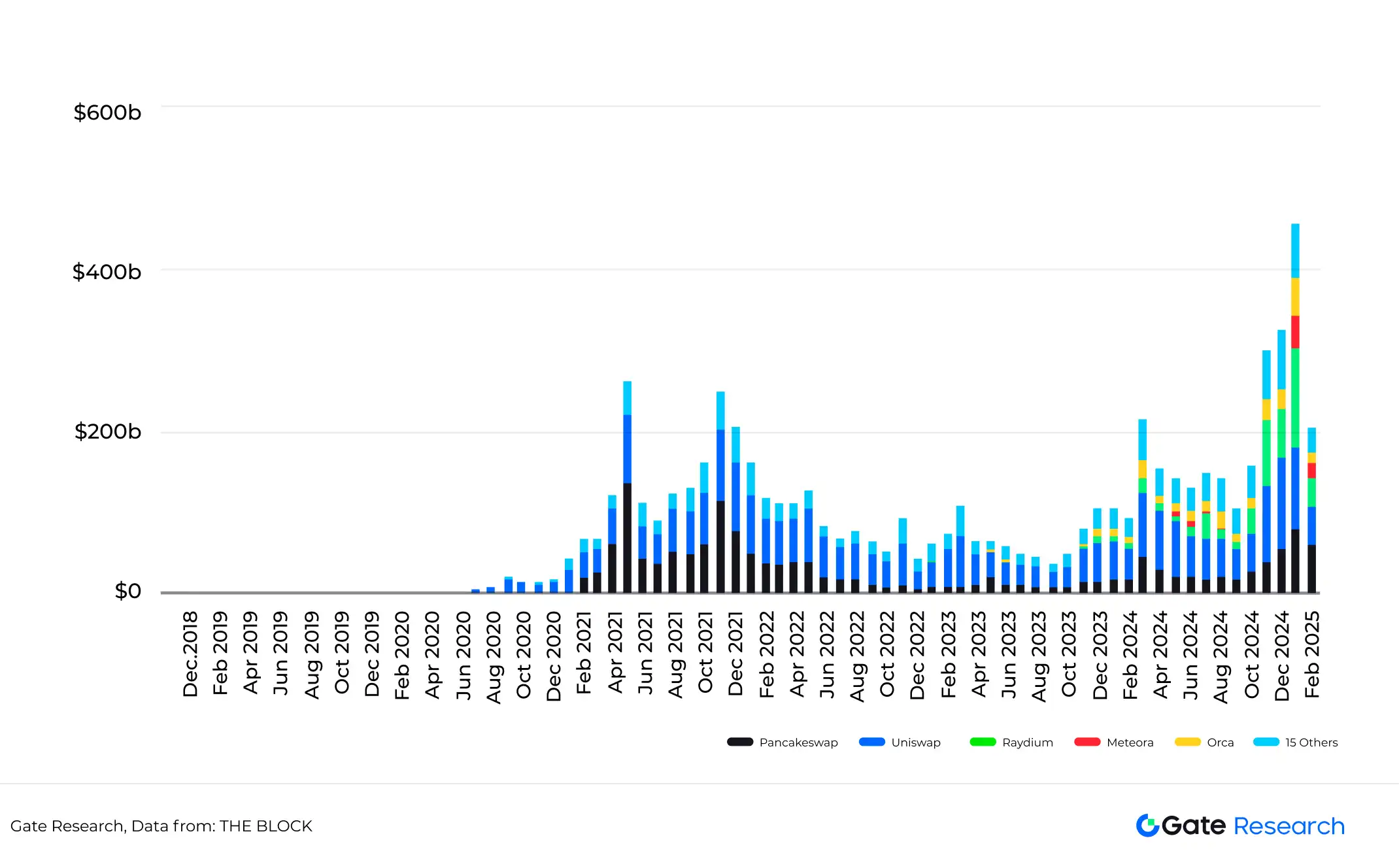 Theo The Block, tính đến ngày 19 tháng 2 năm 2025, khối lượng giao dịch trên DEX đã đạt mức cao kỷ lục. Ngoài ra, khối lượng giao dịch của DEXs so với khối lượng giao dịch giao ngay của CEXs cũng đã đạt mức cao kỷ lục. Dữ liệu này phản ánh nhu cầu ngày càng tăng đối với các giải pháp giao dịch phi tập trung.